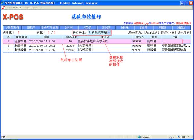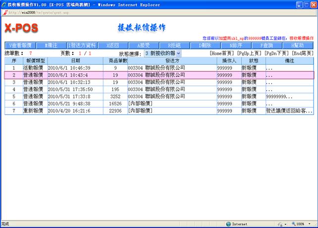 :表示接收该厂商的商品报价资料,并可以(1)反建或更新自己商品档中的相关商品资料(2)将商品报价资料档转进入预约变价档。