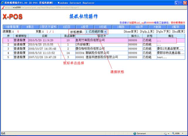 )进行拒绝。可以在‘拒绝的报价’状态下查看已经被拒绝的报价,结果如下图: