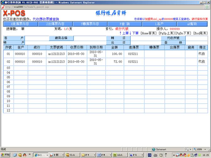 测试环境:银行帐户资料,内网使用ikl_np用户登录。