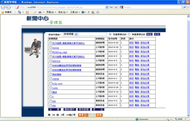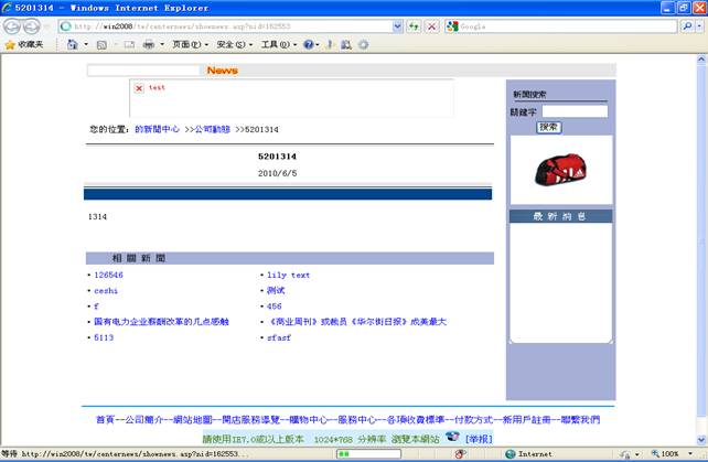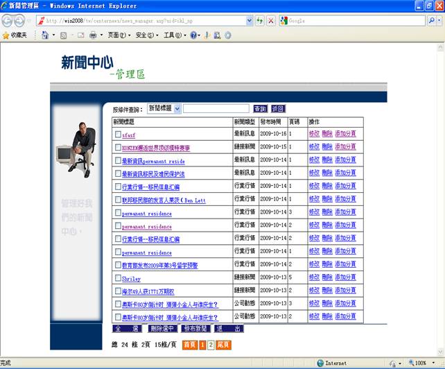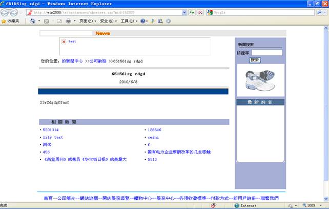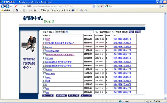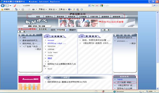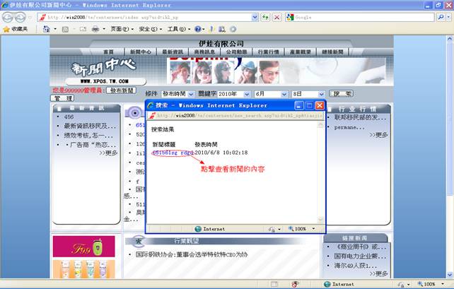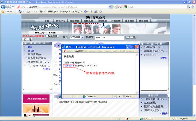 在管理页面你可以通过查询来查找你所添加的新闻(详情看步骤6),看看是否添加成功。当然你也可以在新闻中心页面上按你添加的新闻的分类来查看。