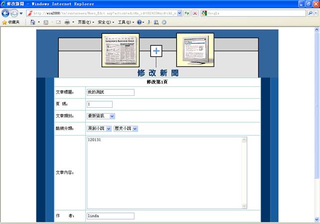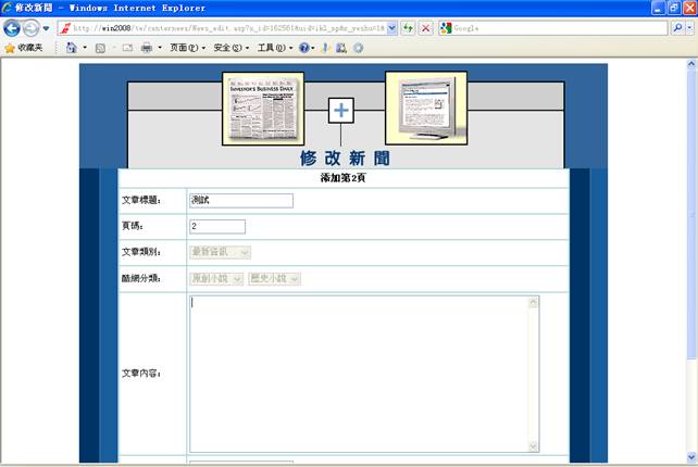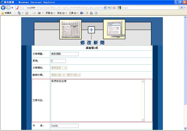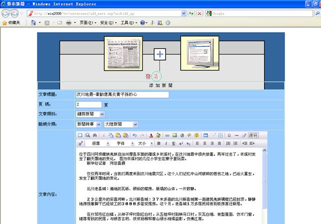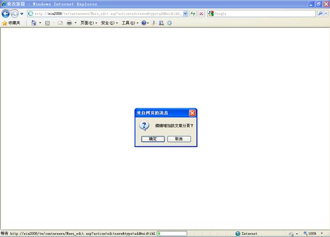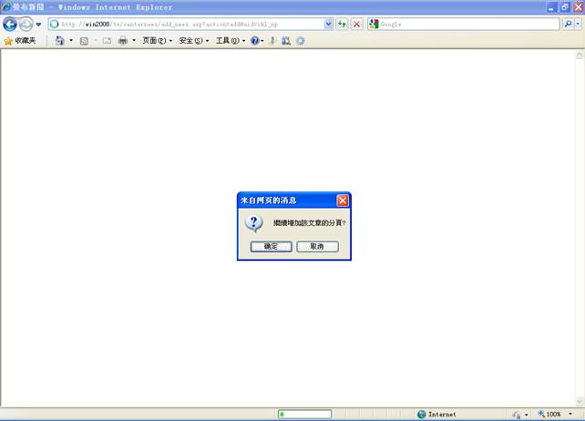 5-4.点击是则继续添加本则新闻的另一页,否则退出新闻发佈,进入管理页面。