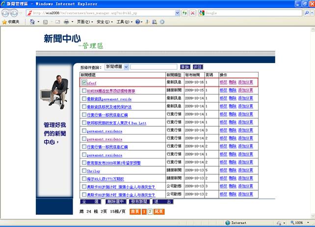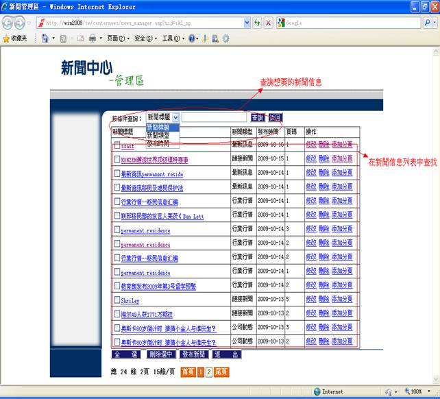 6-2.您可以在新闻信息列表中选择您想要管理的新闻信息,您也可以通过查询得到你想要管理的新闻信息。