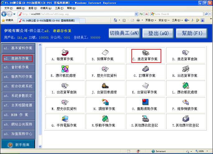 2-A-2: 厂商代号输入:进货系统一定是针对指定的厂商输入进货单,因此厂商代号是利用来作为进货资料中判断正确的要素。输入进退货厂商代号,按下键盘上的