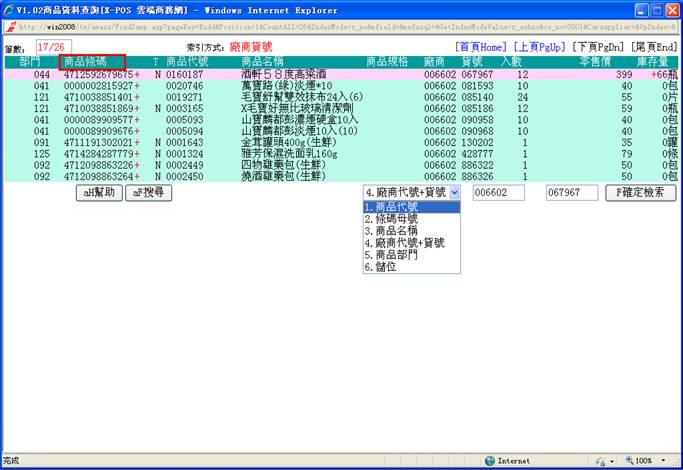 18-I-1-17-A-1. 点击1.商品代号(或使用快捷键