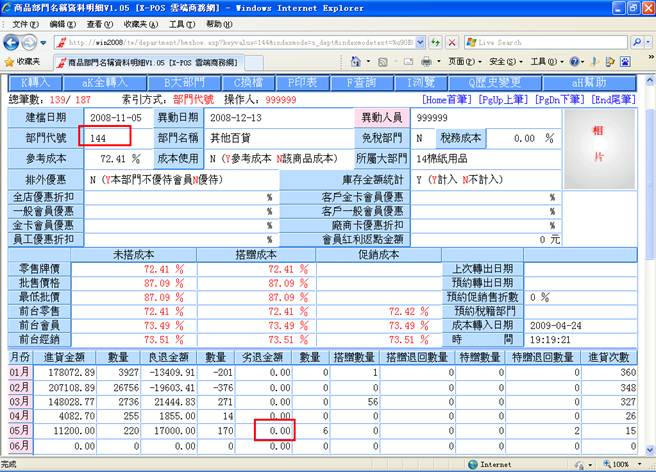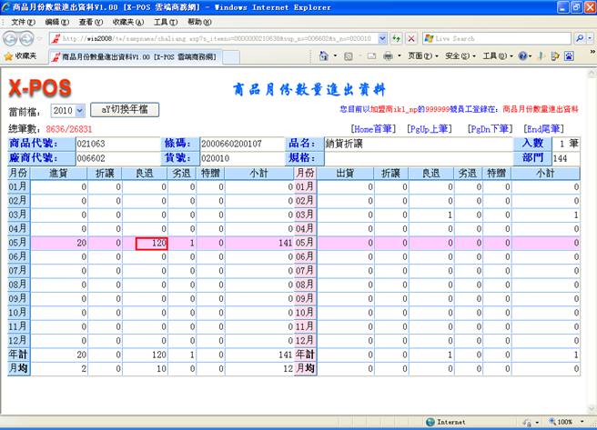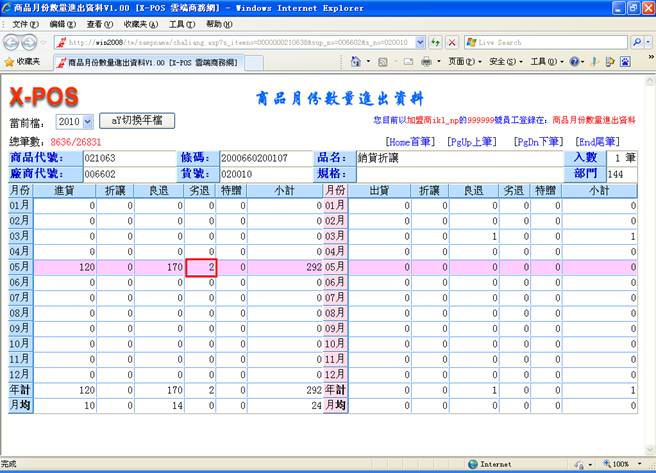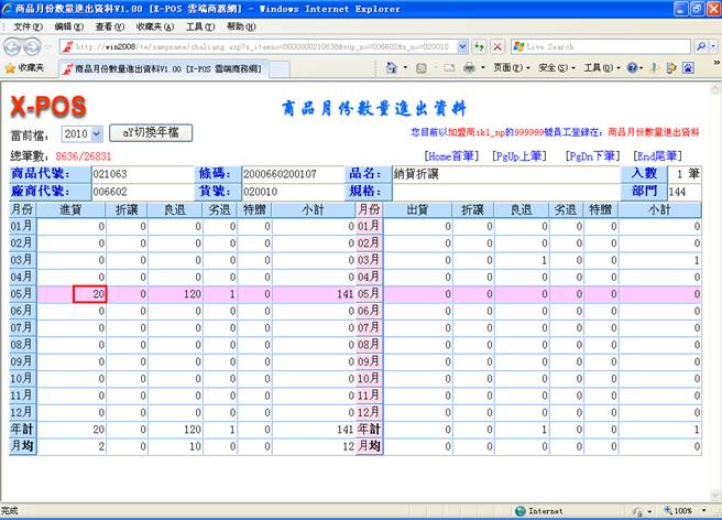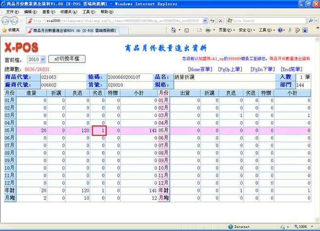 备注3:进货单一张增加进货单次数纪录一次、商品进货一笔增加商品进货次数纪录一次、搭赠的进出都不予纪录次数、进货退回也不予纪录次数。利用进货总金额与进货总次数来换算出每张进货单的平均进货金额。利用商品进货数量与商品进货次数来换算出商品每个月或每次的平均进货数量与金额,对于可以正确提供做采购数量判断的参考相当有利。