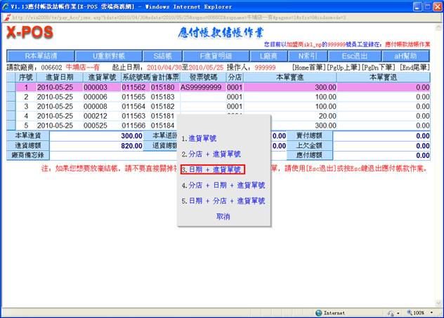对指定的进货日期做进货单明细列表时,可以知道当天的实际进货总额。正确日期格式为(如:2010/05/15 或 2010/5/15),如果输入的格式不正确即弹出警告之提示;