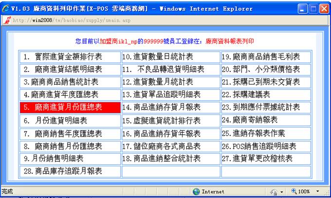 18-I>厂商代号资料『月份进货成本与相关批售总额』,因为已经进货了就应该要累计,此部分与厂商的关帐日期有关,例如厂商资料的关帐日期是设定为每月的『24』日时,这样超过含25日以后的进货资料将计入下个月份中,因此本数量与金额仅供快速参考,实际上的真正进货数据资料一定必须使用厂商资料相关报表来产生。具体操作方法如下: