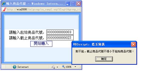 如输入分公司代号:005, 不存在,则弹出提示框,单击