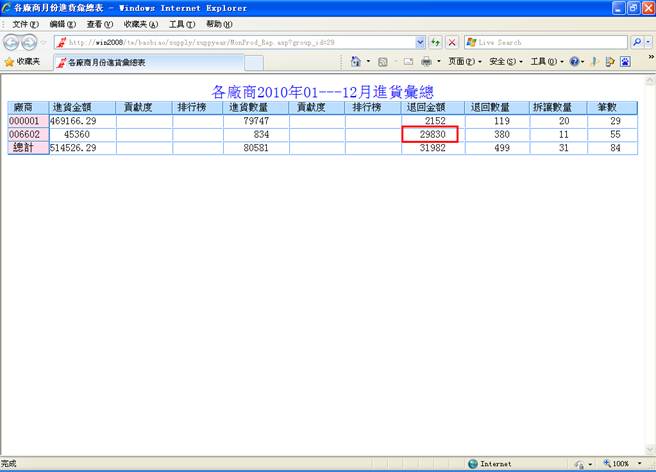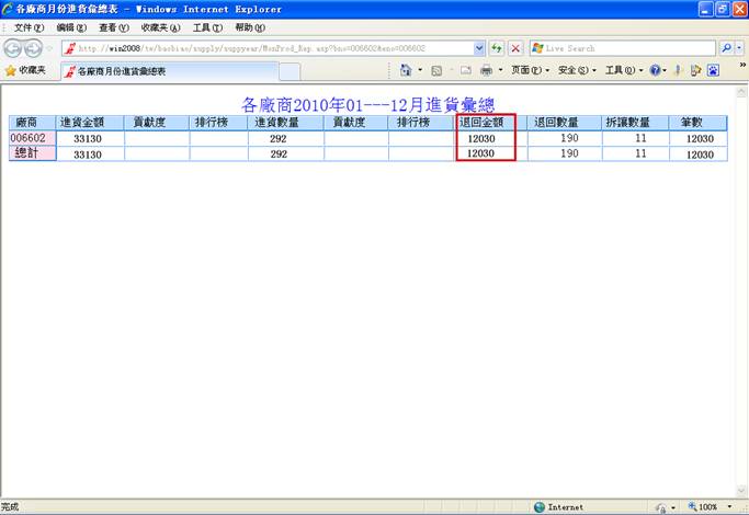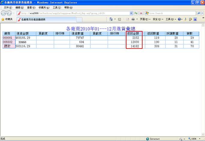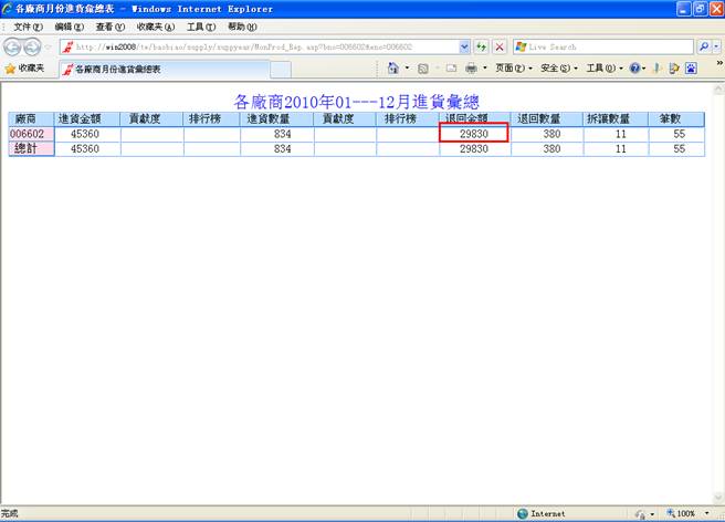 厂商月份进货汇总,未增加良品退回之前,退回金额为:12030;增加良品退回之后,退回金额为:12030+17800=29830