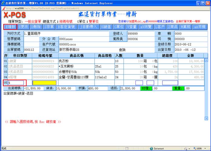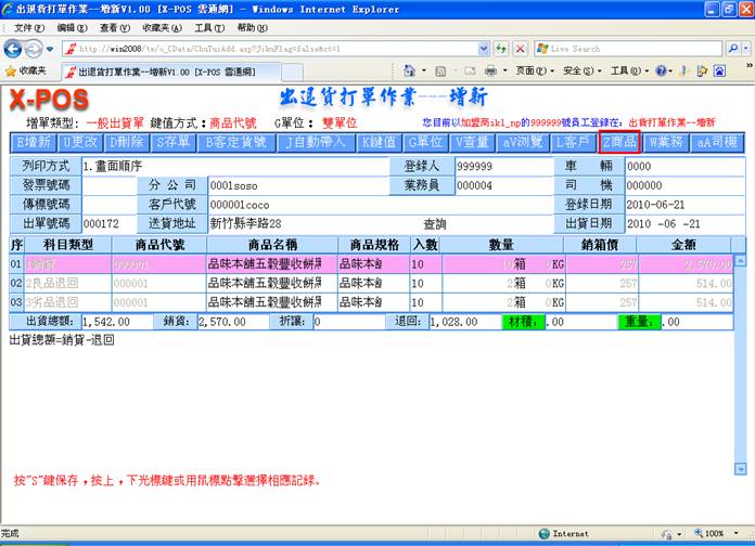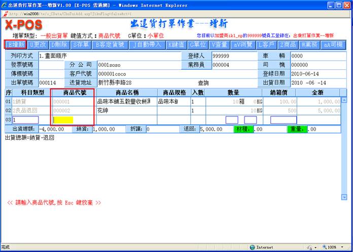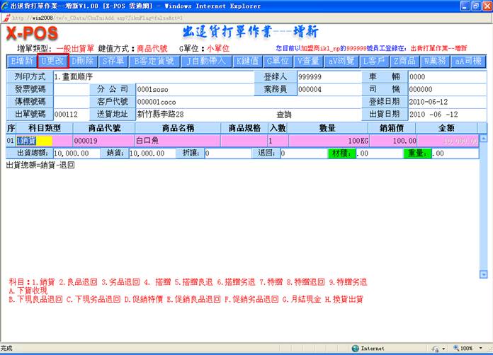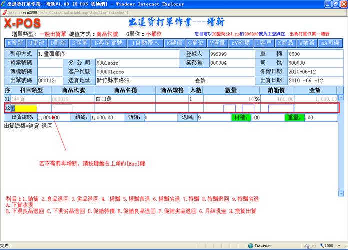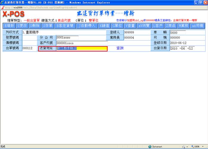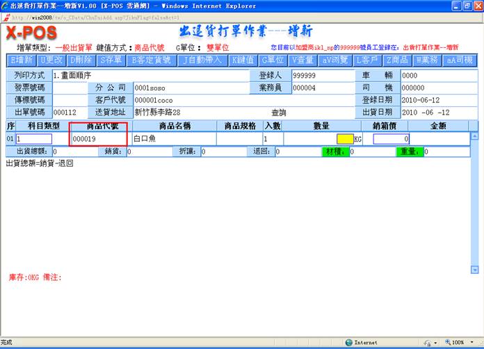 后,进入出货增新页面,如图: