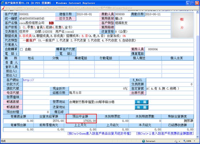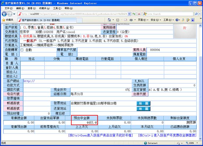 利用出货单上的客户代号,可以快速查看该客户的资料内容明细。点击