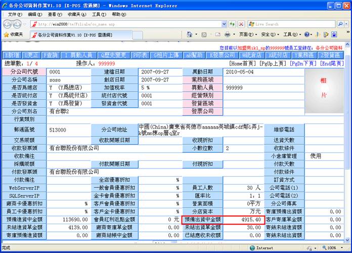 5-4-c.分公司代号资料未结出货总额,因为已经有预备出货了,相对的预备出货金额应该增加。(Co_Name分公司资料档)