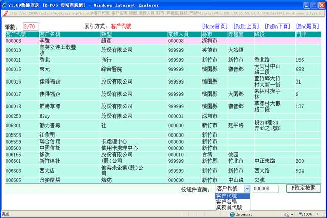 键,您将进入查询页面。在查询页面中,您可以先看当前页中,是否有您所需的客户,若有单击它即可;若无,您可以利用键盘上的