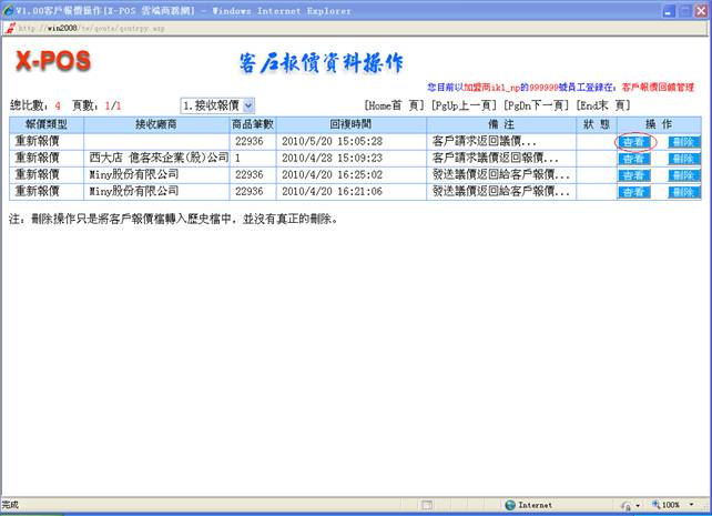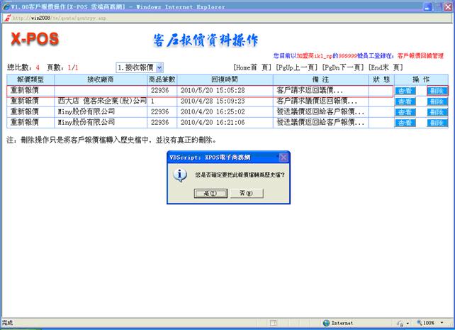 :删除报价信息只是将客户报价档转入历史档中,并没有真正的删除。如下图: