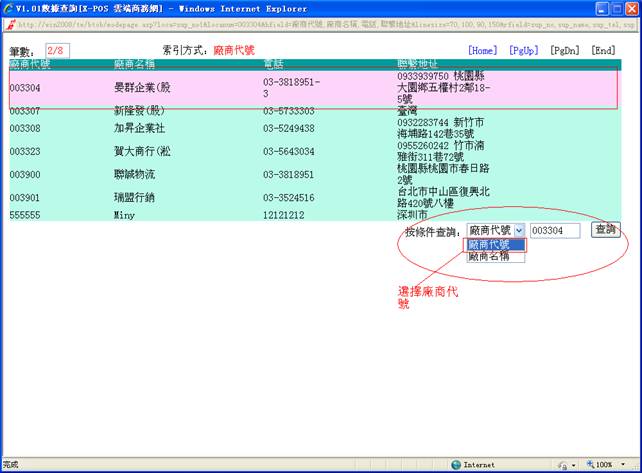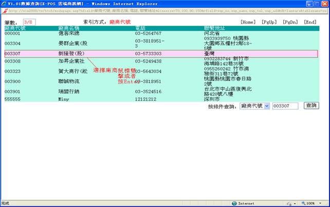 3.通过查询厂商代号或者厂商名称,选择一条数据