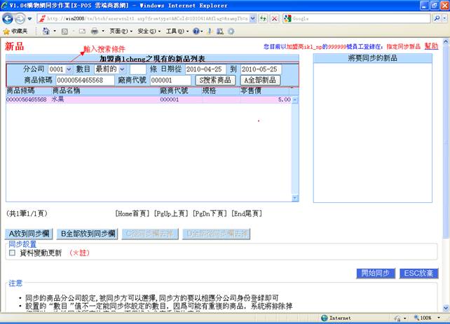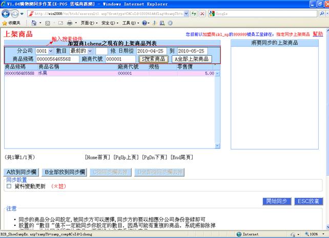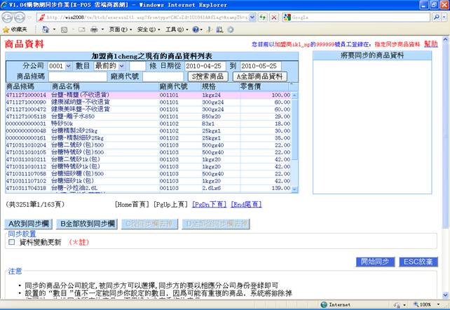 参考厂商购物网同步,你只能和你已经建立厂商关係的加盟商同步资料。若没建立厂商关係,你可以返回办公区点击