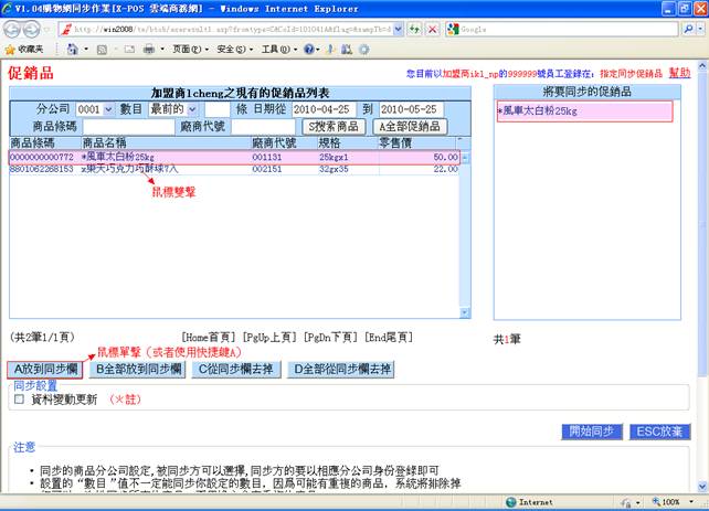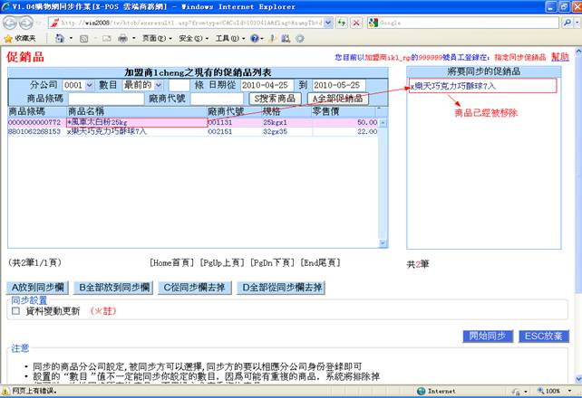 ),商品就会自动添加右边的将要同步的促销商品栏里。