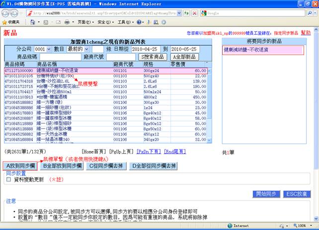 2-1.通过鼠标单击‘参考厂商购物网同步’(或者使用快捷键