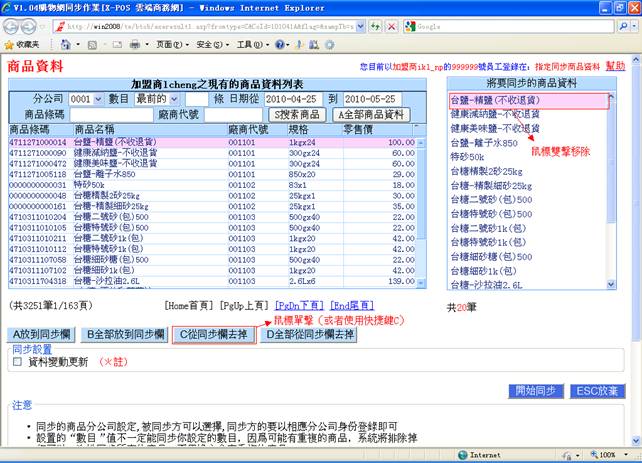 ),商品资料就会自动添加右边的将要同步的商品资料栏里。