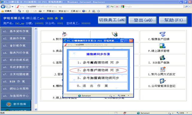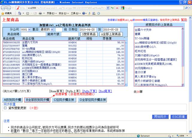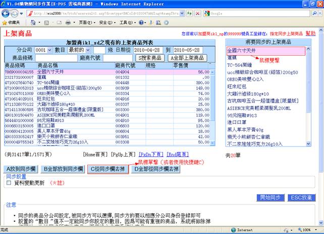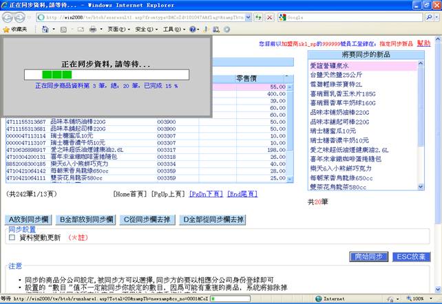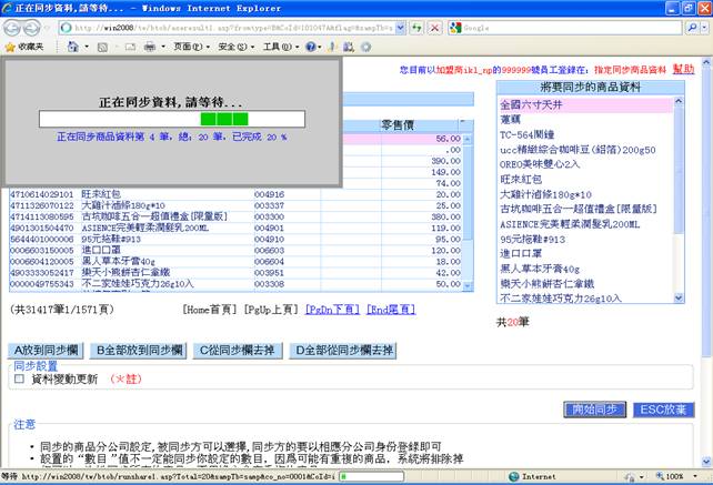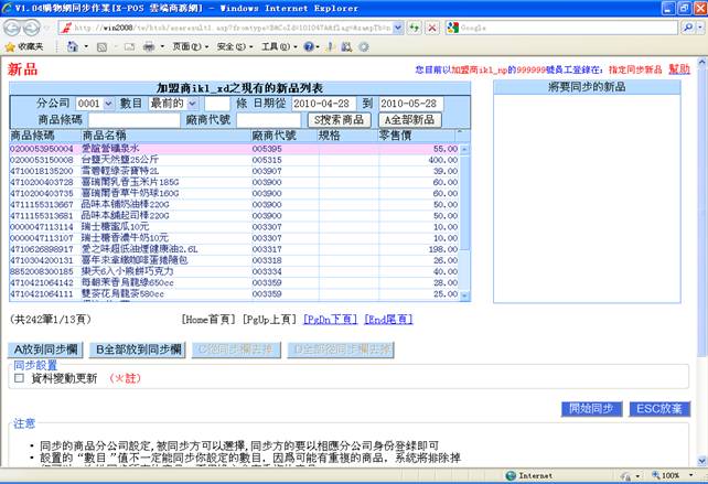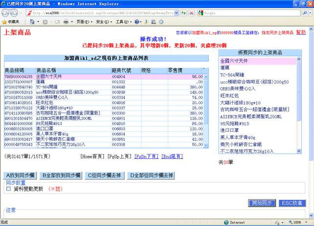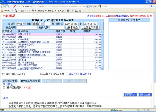 参考客户购物网同步是你和你已经建立客户关係的加盟商同步资料。目前包括上架商品同步、促销商品同步、新品同步、商品资料同步、自定义同步(自定上架商品、自定促销商品、自定新品、自定商品资料)。