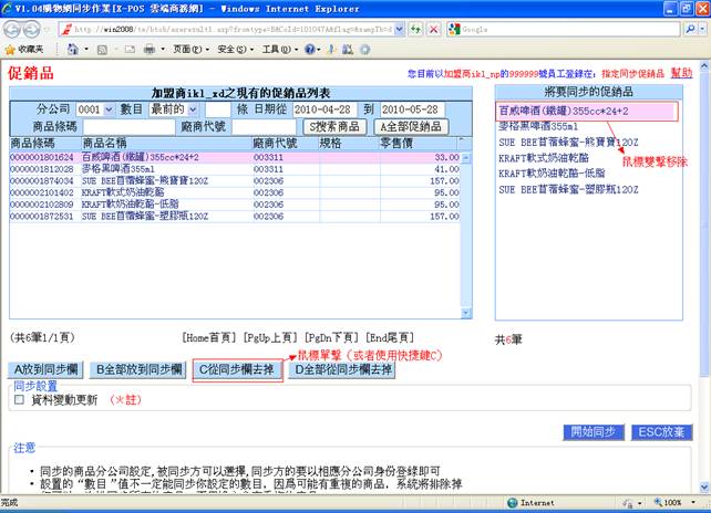 ),商品就会自动添加右边的将要同步的促销商品栏里。