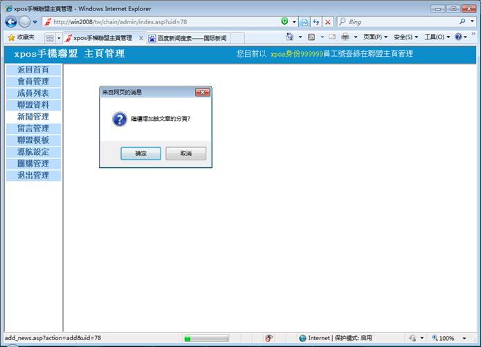 注意:添加新闻==>文章类别如果选择“最新资讯”则在联盟中心的“最新资讯”中显示,选择“联盟动态”则在联盟中心的“联盟动态”显示,选择“行业行情”则在联盟中心的“行业行情”显示,选择“产业观望”则在联盟中心的“产业观望”中显示,添加方法都是一样的,这裡就不多说了。
