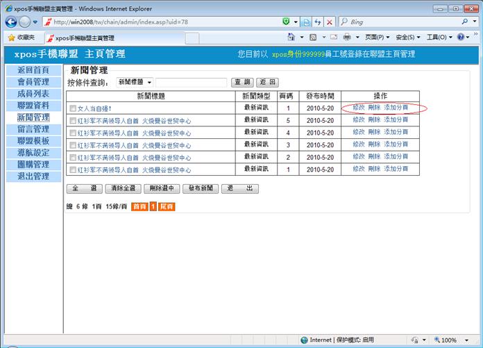 按修改或直接点击新闻标题可以进入修改新闻页面,对新闻进行修改,也可以按