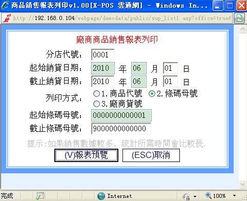 2-B厂商商品销售报表列印