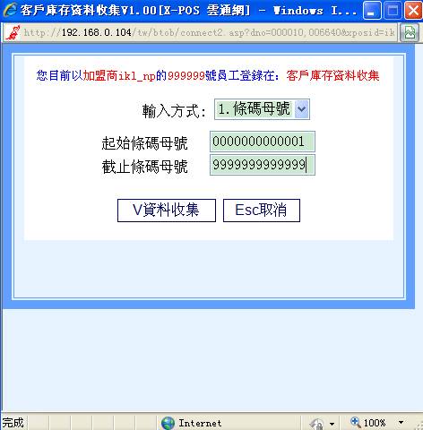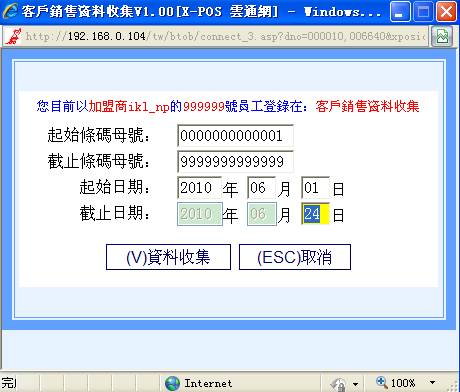 3-C-2 选择您要收集的条码母号范围和起止销售日期后,点选“V资料收集”。