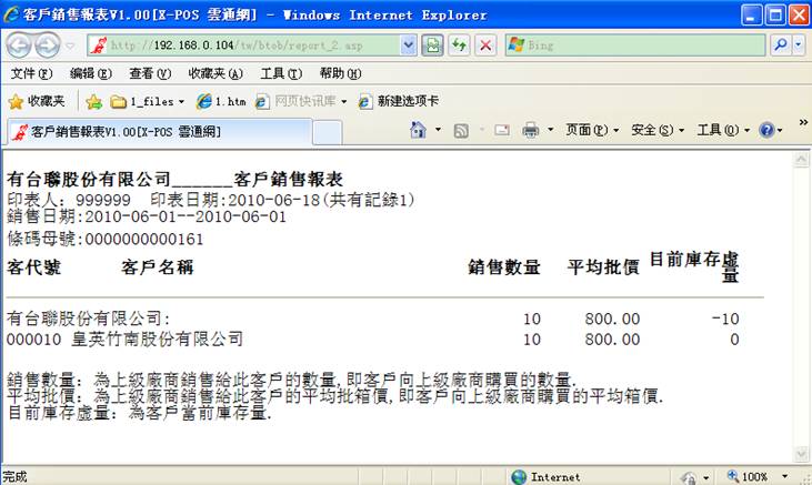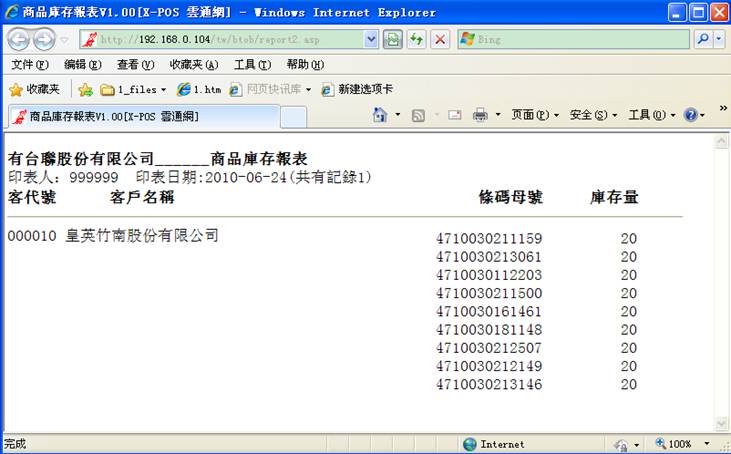 2-A-2 客户的相关商品库存,列印如下