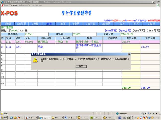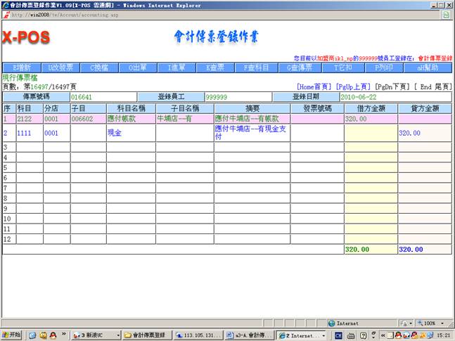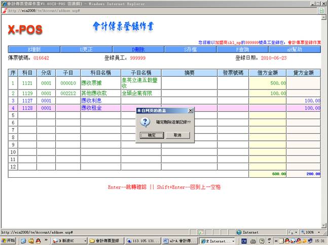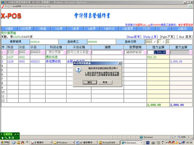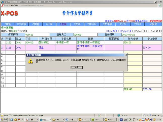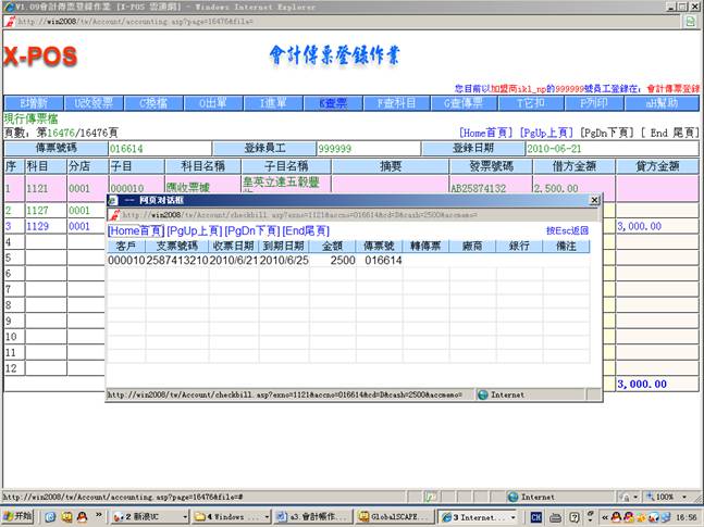 3-7.从现金传票登录中增加传票号码(016612)