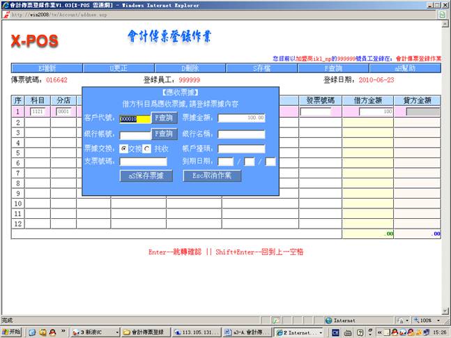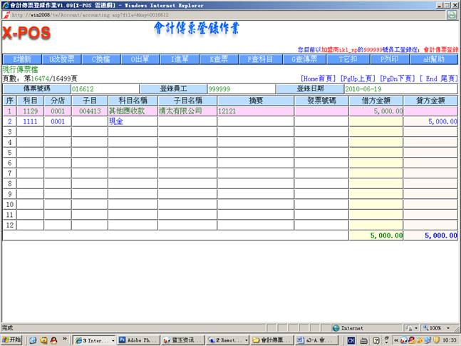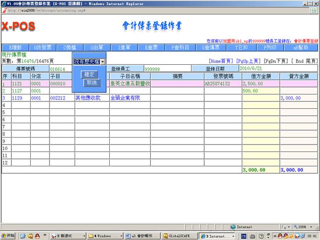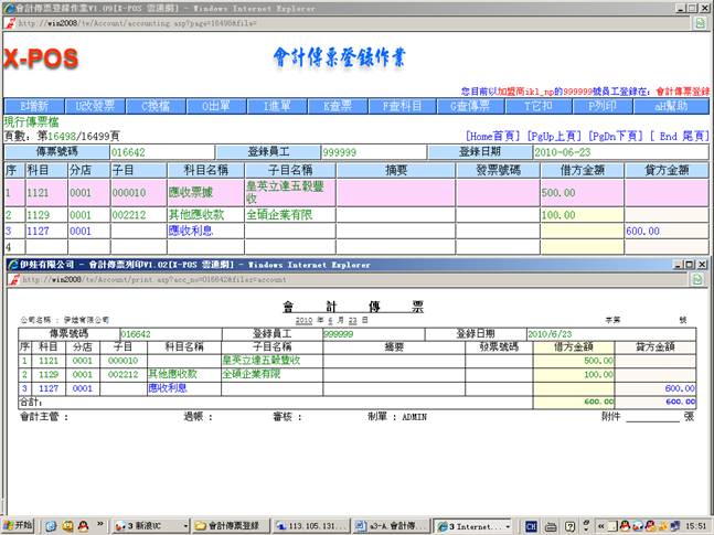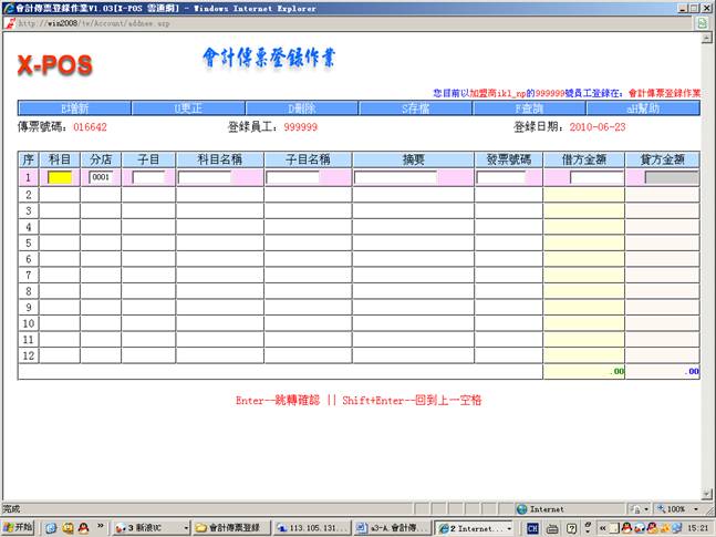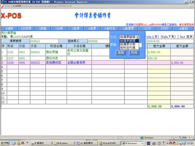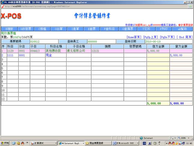 2.进入会计传票登录作业