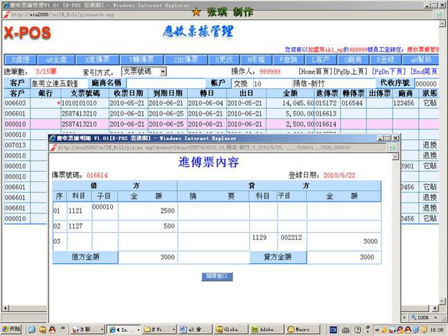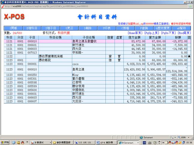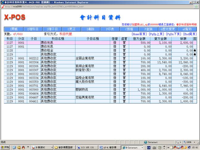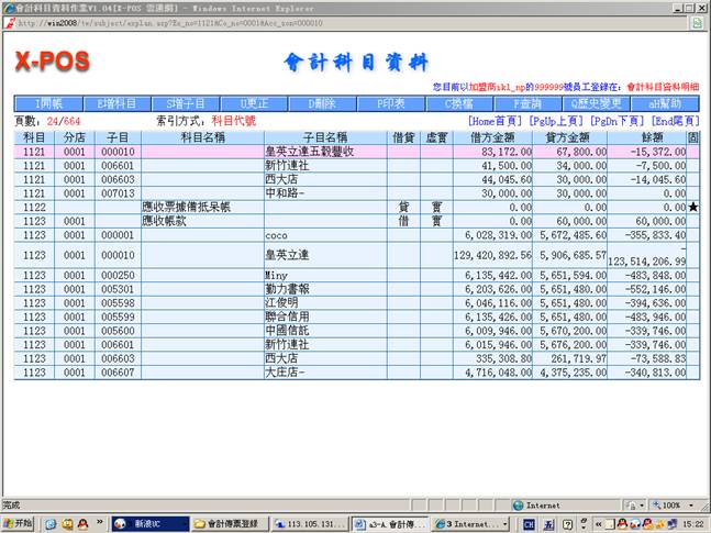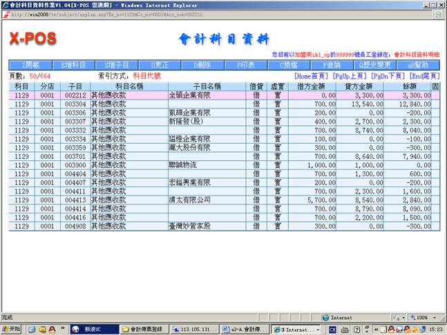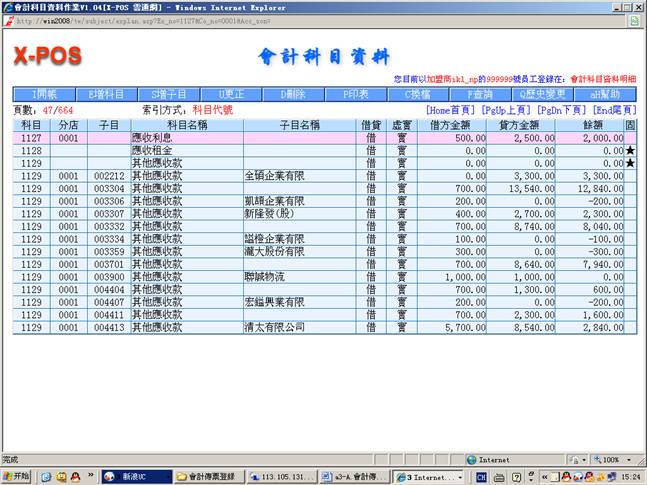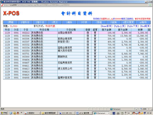 本系统会计传票格式与实际人工作业之会计转帐传票格式相同,可以输入左边借方与右边贷方合计共12笔细项分录,可以管理最多9999家分公司的会计帐目,并且每项会计科目可以细分999,999个子科目,每样输入的会计科目更会连结相关的基本档案,例如银行资料、票据资料、他扣资料、进货资料、出货资料、科目试算表等等。