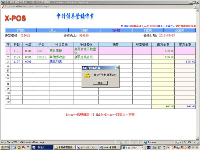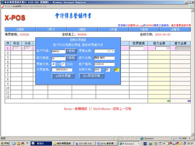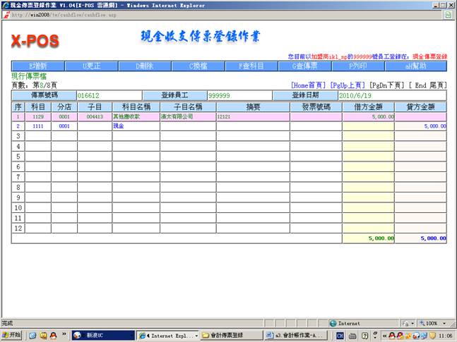 测试内容:会计传票登录
