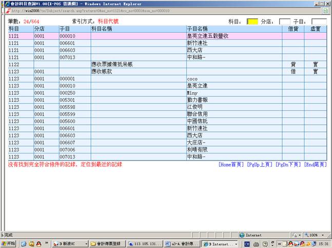 9-1.在科目、分店或子目中输入科目代号、分店代号或子目代号输入一个或多个条件回车即可。例如:输入科目1121、分店0001、子目000010.