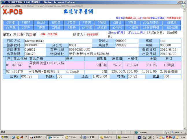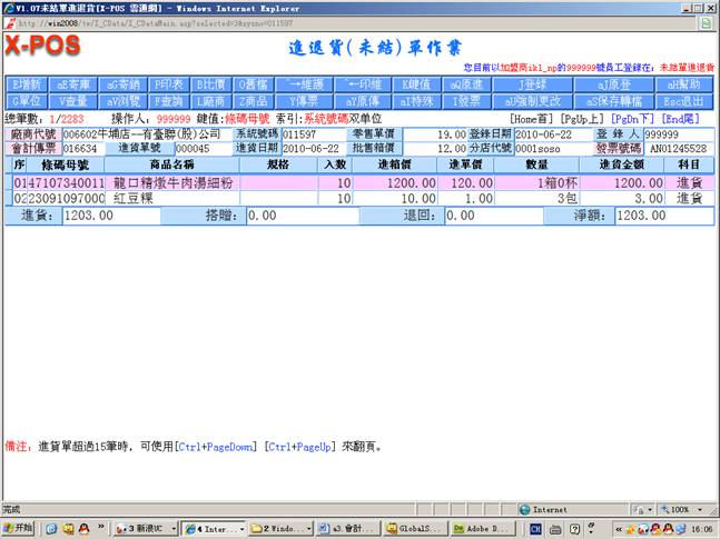 7-2.进入进退货单查询厂商006602、进货单号000045