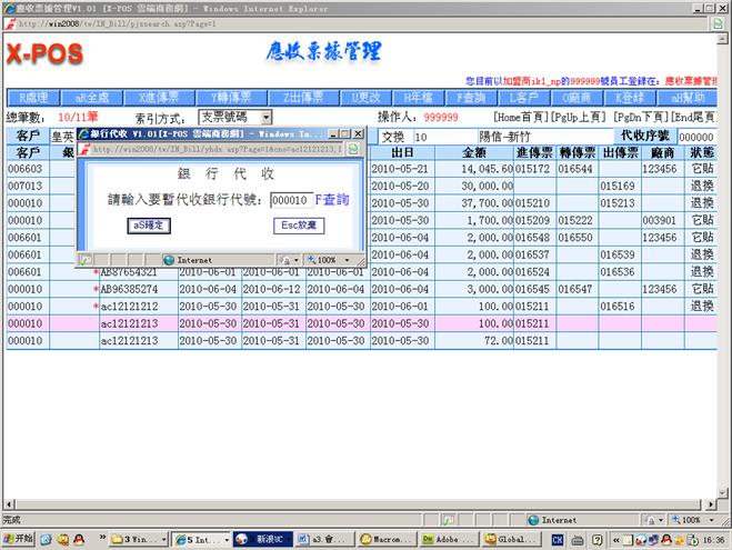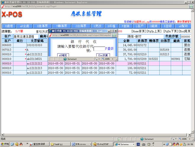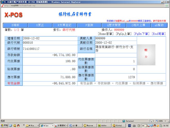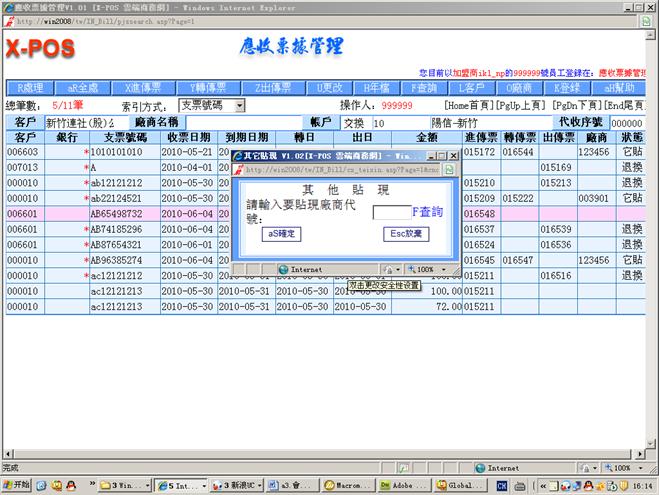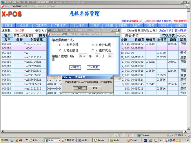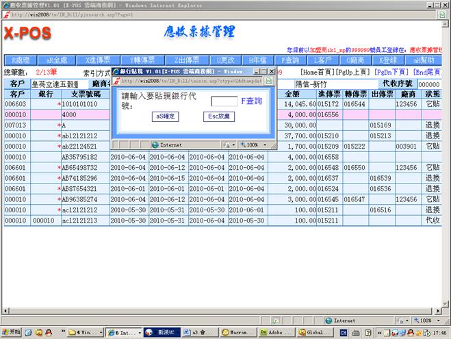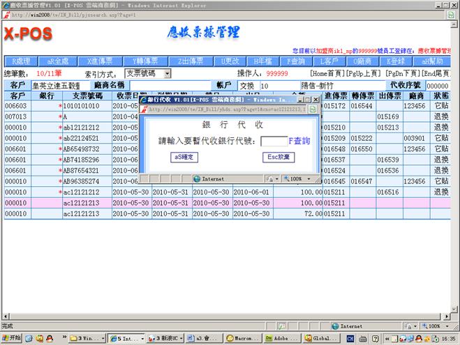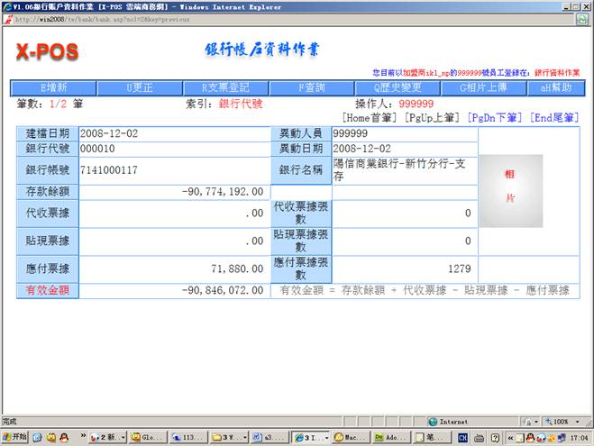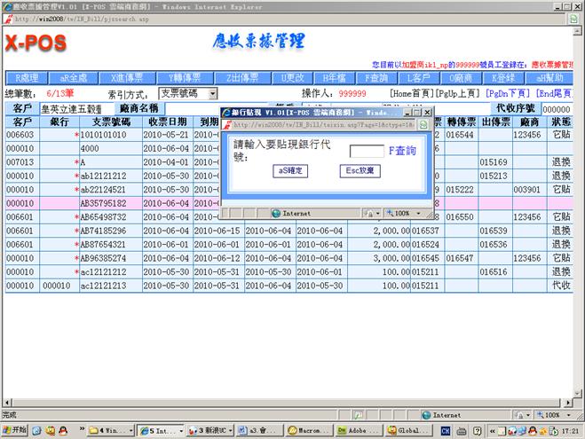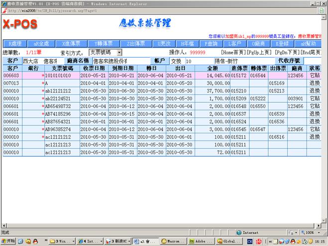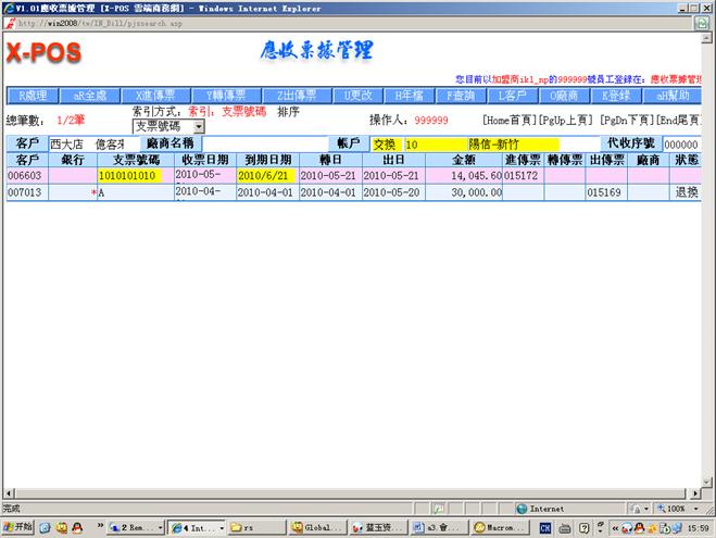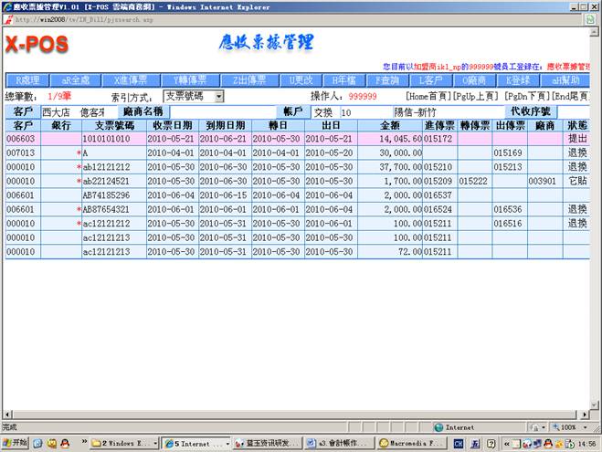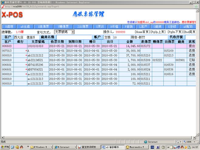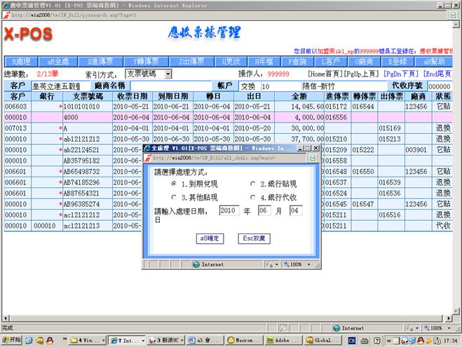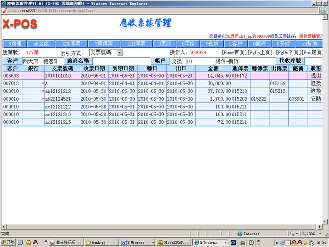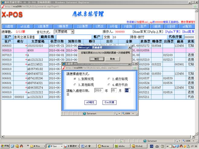 )=》更改票据支票号码、到期日期、帐户等(黄色代表可更改项)