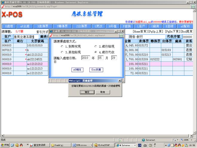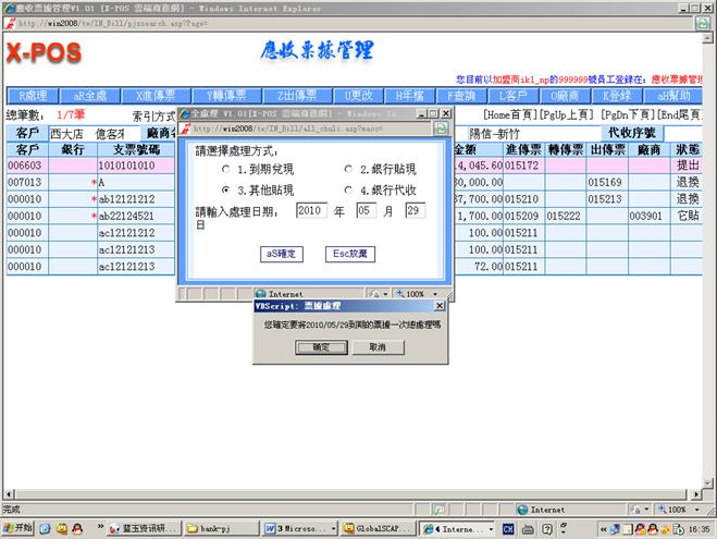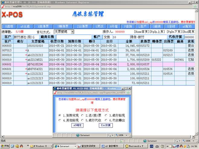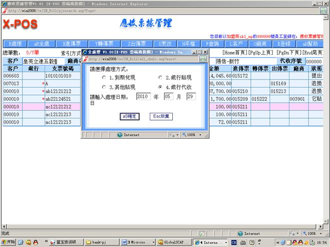 )=》选择处理方式(1.到期兑现;2.银行贴现;3.其它贴现;4.银行代收)