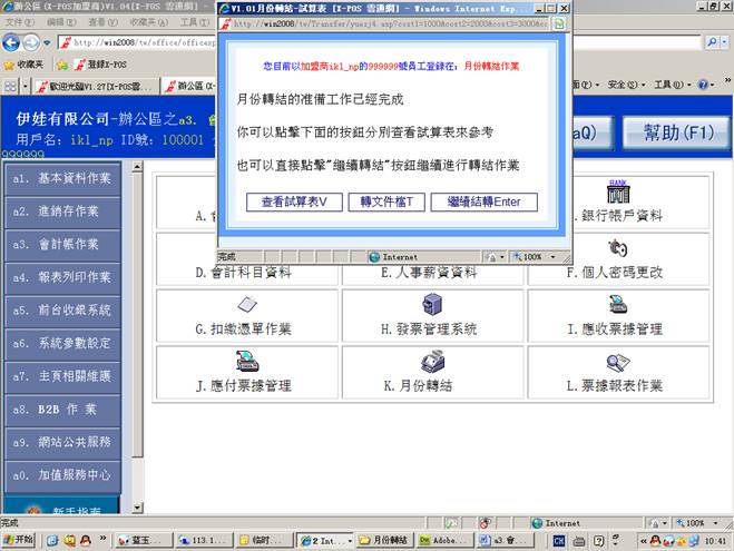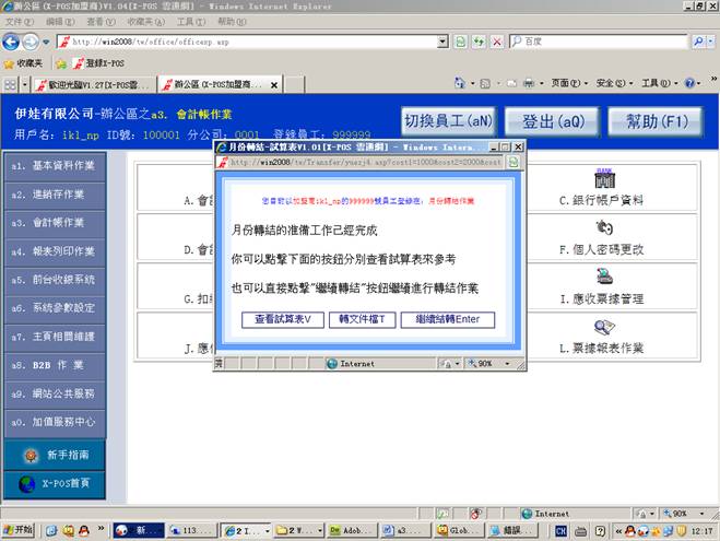 4-2-4. 进入月份转结试算表=》点击