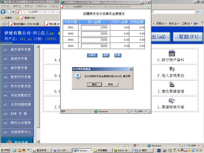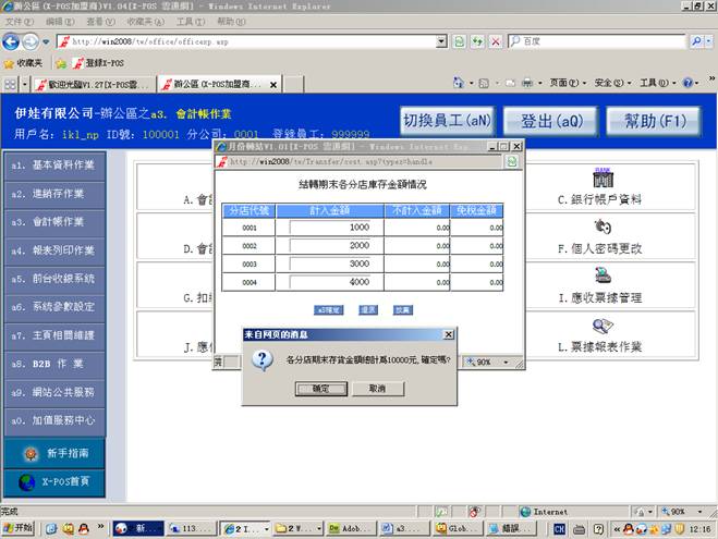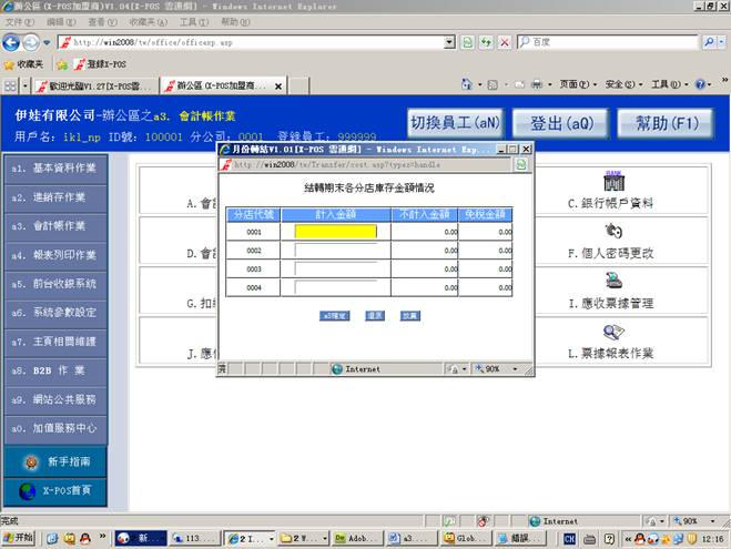 找不到2009/04月份的库存月档,现是将手动输入入各分店期末库存金额=》点击