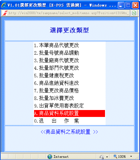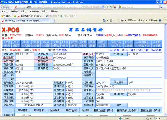 4-1、首先可在商品名稱資料裡對其輸入進行設定(辦公區=>a1.基本資料作業=>F.商品名稱資料),以下是條碼母號以23開頭的商品資料,點擊