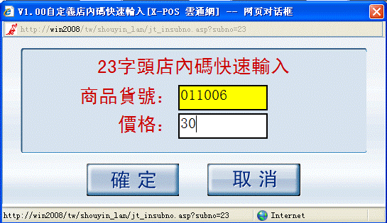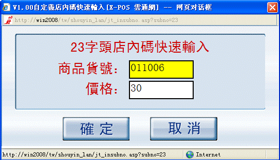 指以“23”為頭的條碼母號商品,系統設定用戶在此類(23為頭的條碼,此系統已設定為生鮮類)商品結帳操作時條碼將隨其價格而變動。