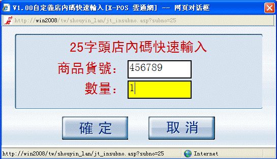 6-2、在窗口中輸入商品貨號(指條碼中“