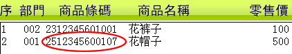 b.商品流水號 ==>『1 2 3 4 5 6』。