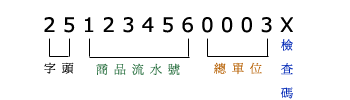 『2 5』字頭:利用于PLU之時價商品,對于價格一致但內包裝數量不一的生鮮商品標價相當有用,如此一來我們只需由條形碼上取得本商品的固定數量(或重量單位),再查看計算機的時價即可算出總價,我們稱這種條形碼為『數量標』。使用方式如下:
