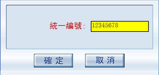 1-2、完成上步操作后系統將彈出以下輸入框,在此輸入欄中輸入統一編號:12345678。並選擇按鈕(或使用快捷鍵):