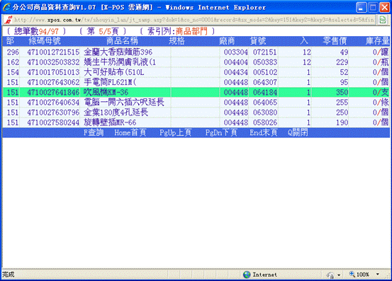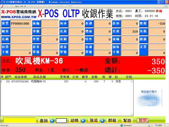 7-3、完成上步操作后,X-POS收銀界面中的白色框內將會顯示欲退貨商品的資料並在數量前加標記“-”,(注意看