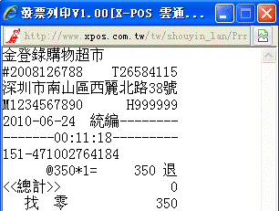 彈出以下對話框和發票列印: