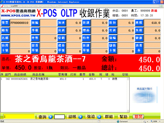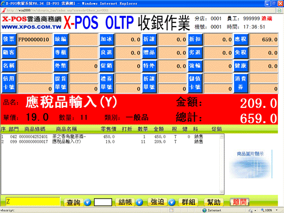 21-3、按后所輸入的資料將顯示在X-POS收銀界面的白色框內,可見應稅金額都發生了相應變化: