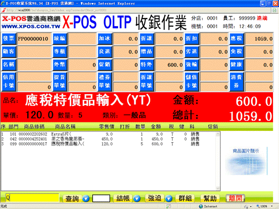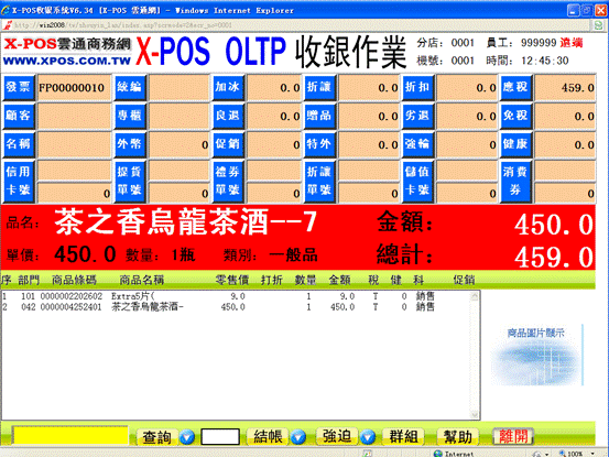 22-3、以下是完成上步操作后的X-POS收銀界面,可見收銀界面中已加入第3筆商品,和都發生了相應的變化:
